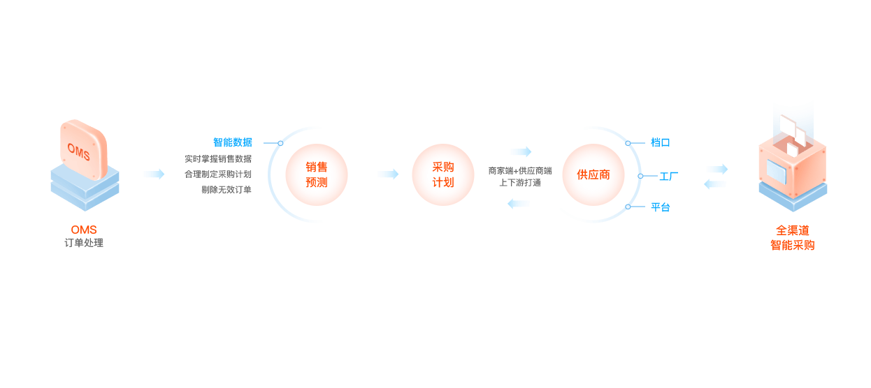 • 全渠道鋪貨、全渠道下單、全渠道采購,實現訂單統一管理,店鋪經營更高效